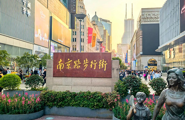 Then visit the Nanjing Road, the eastern part of which is the main shopping district of Shanghai. It is one of the world's busiest shopping streets, along with Fifth Avenue, Oxford Street, Orchard Road, Takeshita Street and the Champs-Élysées. In some contexts, "Nanjing Road" refers only to what was pre-1945 Nanjing Road, then rendered as Nanking Road in English. The former Nanking Road lay entirely within the Shanghai International Settlement. Today's Nanjing Road West was formerly Bubbling Well Road, an extra-settlement road built by concession authorities outside the concession proper. The two roads met on the northern edge of the Shanghai Race Club.